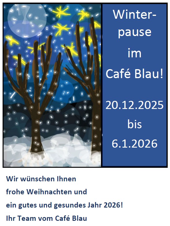 Das Café Blau ist vom 22.12.2025 bis 06.01.2026 geschlossen!